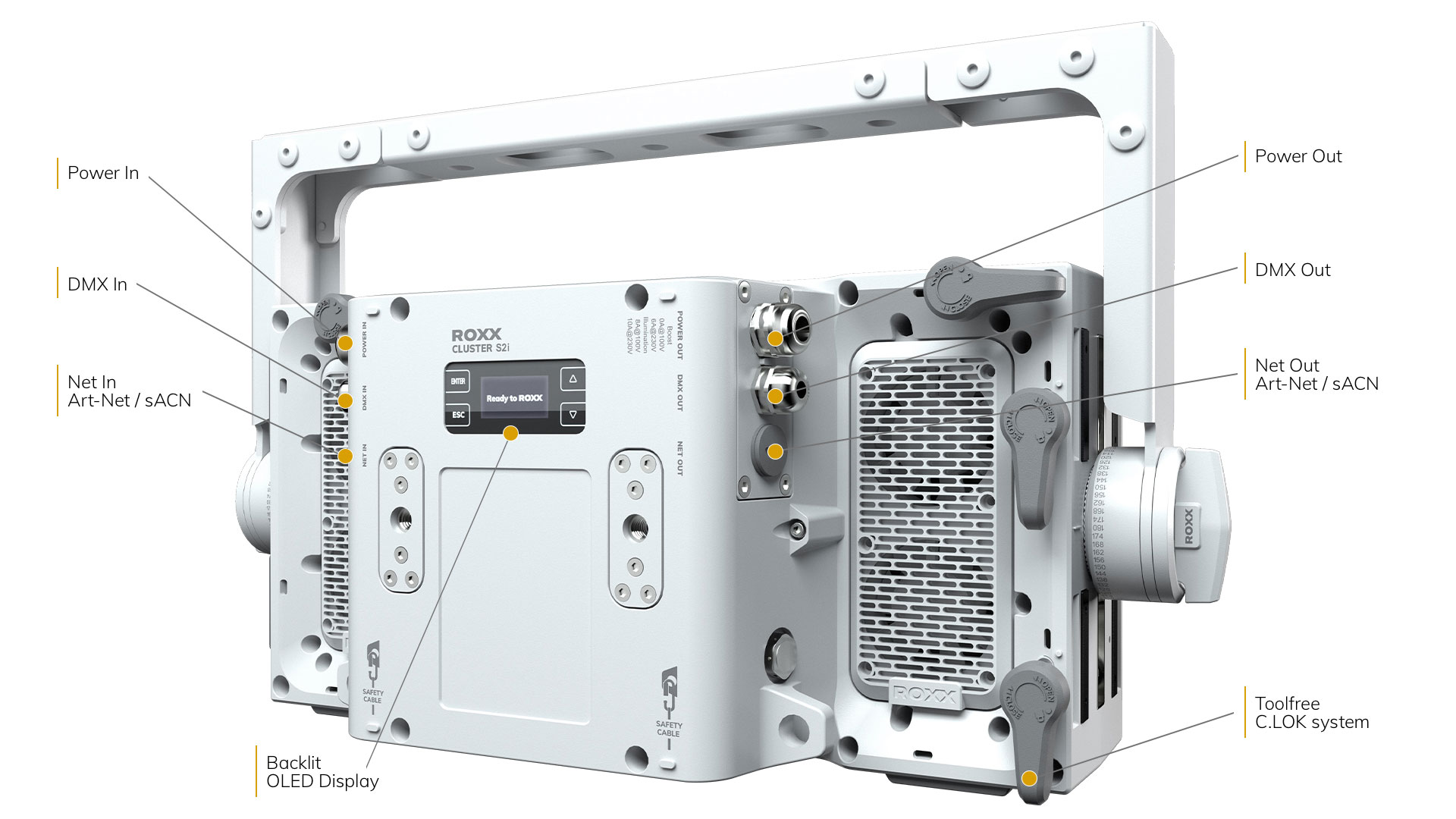 Mit dem patentierten C-LOK-System lassen sich ROXX® Geräte schnell und bequem ohne Werkzeug miteinander verbinden – von einer einzelnen vertikalen / horizontalen Linie bis hin zu riesigen matrixartigen Arrays.