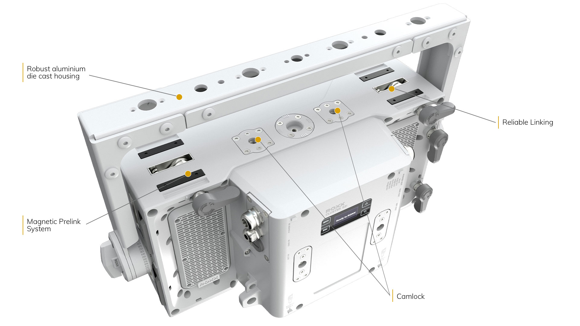 Das magnetische Vorverbindungssystem hilft beim Ausrichten der ROXX-Vorrichtungen und ermöglicht eine „Einhandbedienung“ für eine sichere Verriegelung.