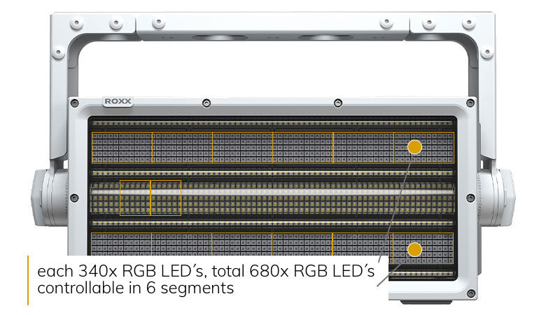 | Lichtquelle | 612x CW-LEDs (7000K), 680x RGB-LEDs |