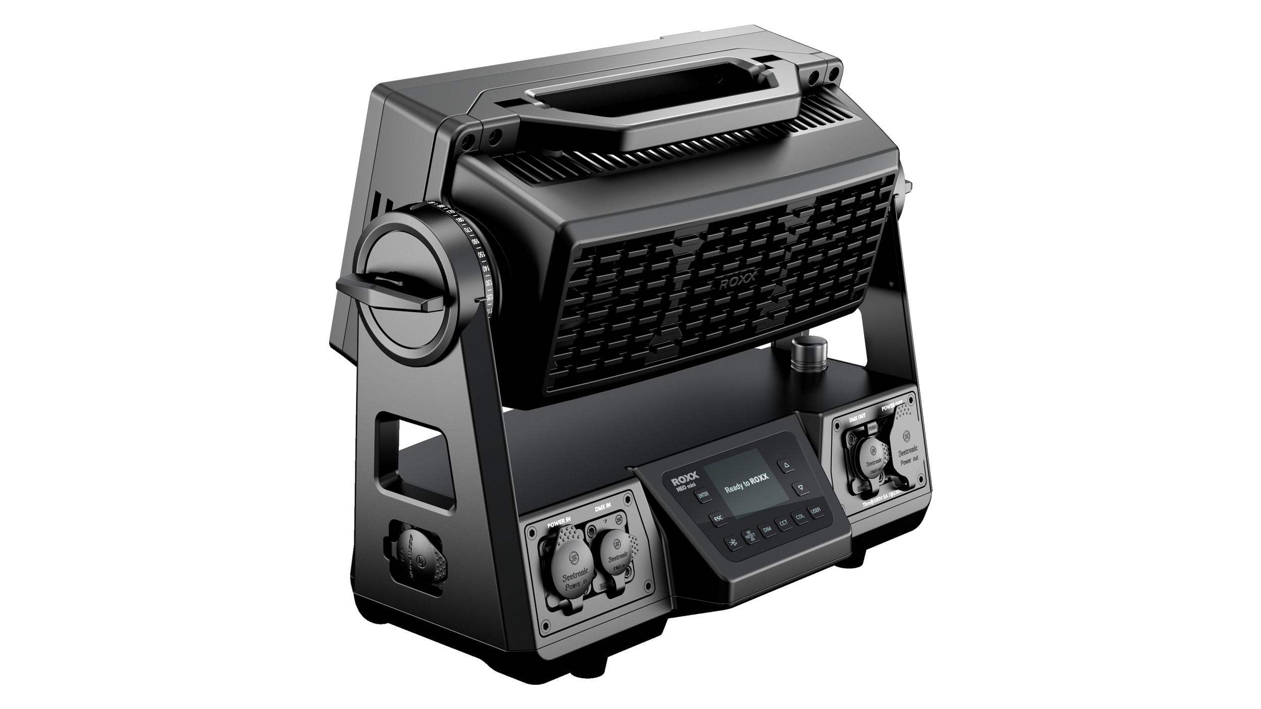 - Integrierter CRMX-Transceiver und Bluetooth-Modul für drahtloses DMX-Setup nach Industriestandard und direkte Steuerung über die ROXX-App